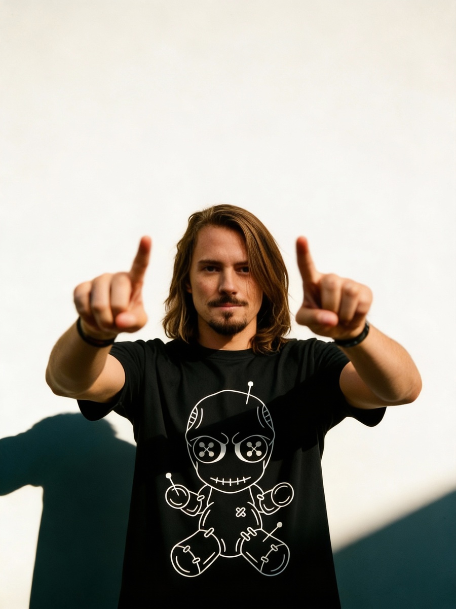 Магия в линиях. Минималистичный силуэт куклы вуду с иглами — твой личный оберег или предостережение. Это не просто принт, а артефакт. Для тех, кто верит в силу символов и носит свою мощь с холодной, зловещей ухмылкой. Позволь взглядам застревать.